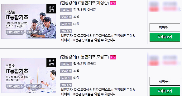 두 강사님의 수업이 있다는걸 알 수 있어요.