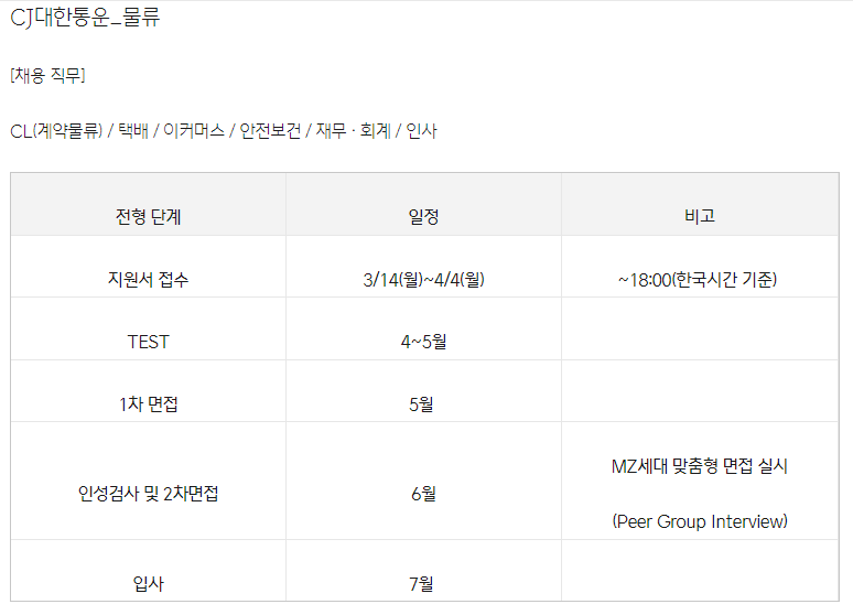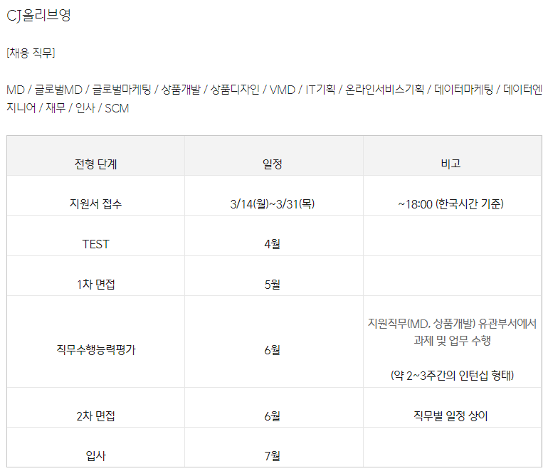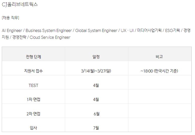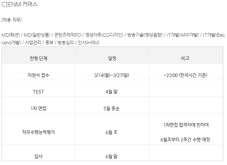 어떤 일정으로 어떤 직무를 뽑는지도