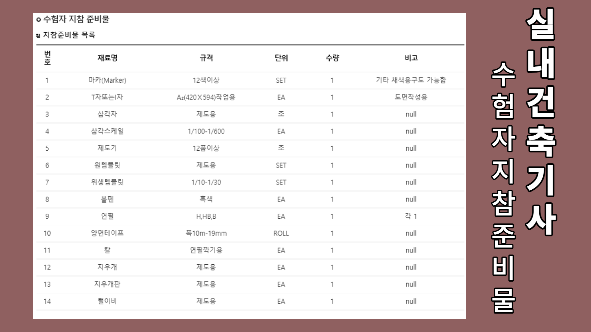 참고용으로 이번년도 진행되었던 시험준비물 올려드릴게요!