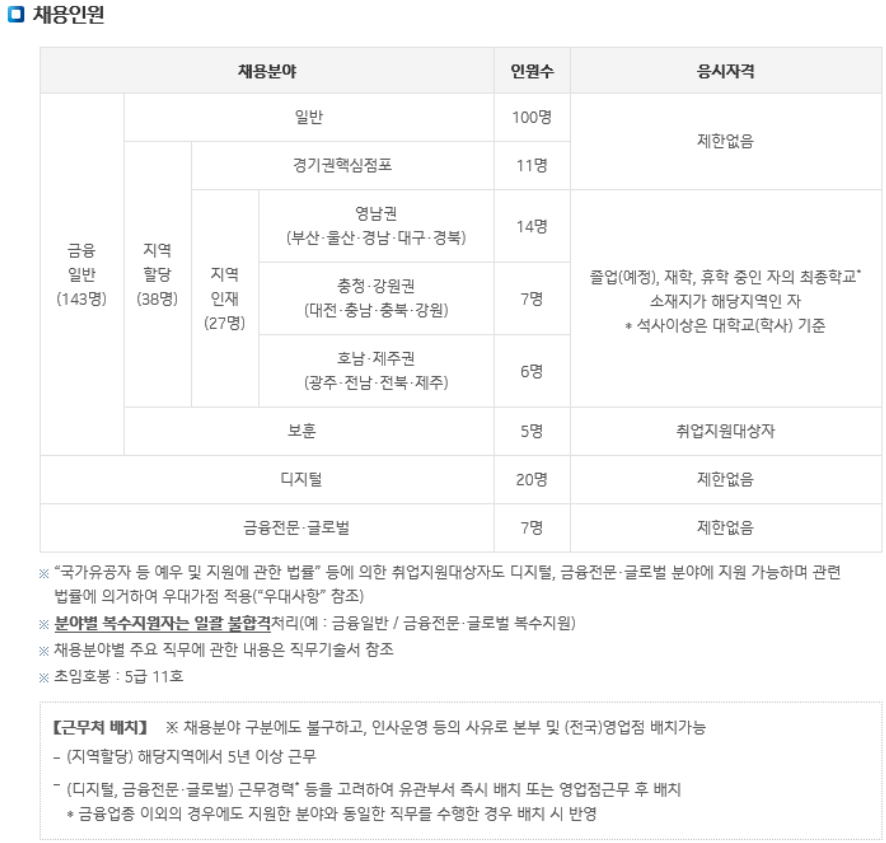 금융일반직은 5배수, 디지털 및 금융전문 글로벌직은 8배수로 선발됩니다.