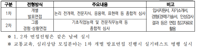 마지막 도로교통공단 공개채용 전형절차인 면접의 경우 1,2차 총 2차례 진행되는데요.