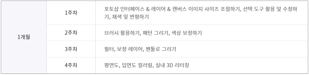 체계적이고 합리적인 커리큘럼으로 1개월 과정에 포토샵을 배울 수 있습니다.