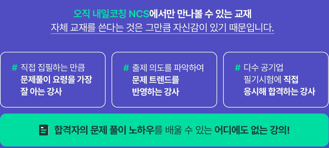 NCS 필기를 준비하는 학생들이 많을텐데 제대로 케어 받을 수 있을지 의심되는 분도 계실겁니다!