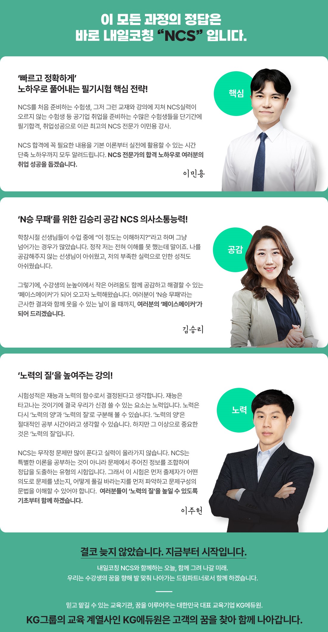 KG에듀원 내일코칭의 공기업 NCS 3개월 완성반은 낙오자 없는 개별관리를 목표로 하여